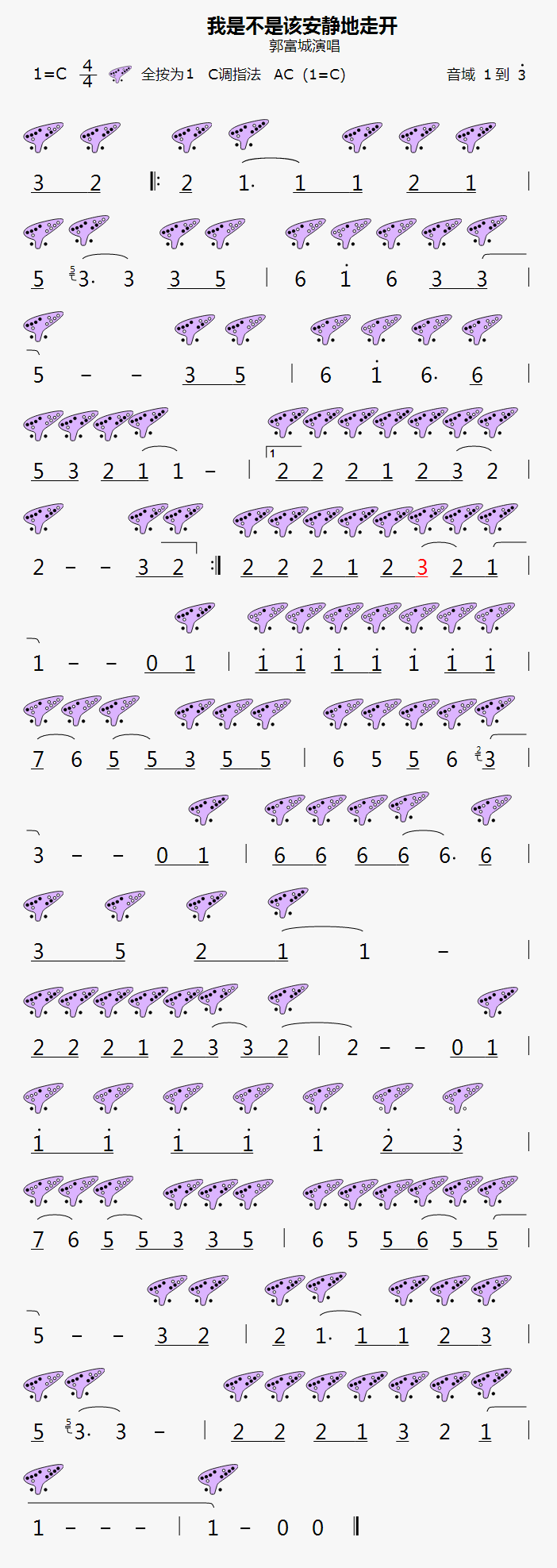 《我是不是该安静地走开》12孔陶笛曲谱