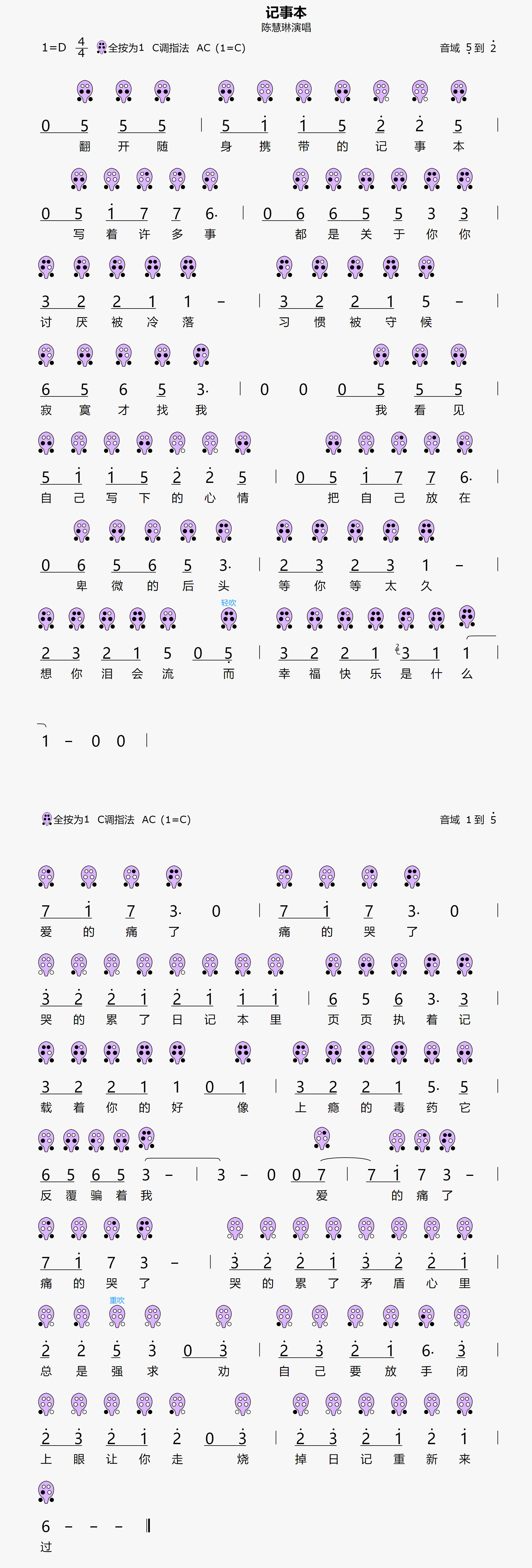 {记事本}6孔陶笛曲谱