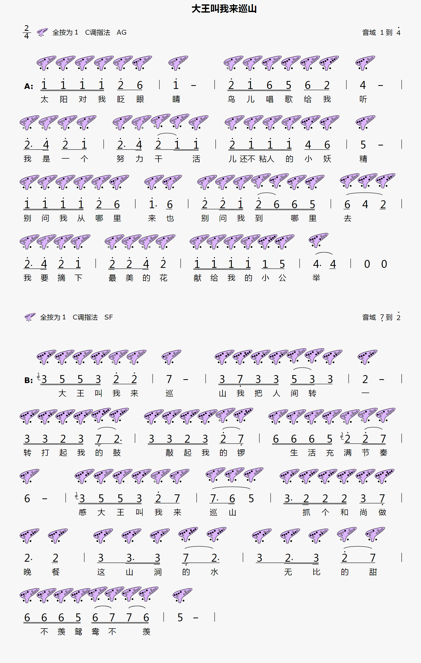12孔 《大王叫我来巡山 》陶笛简谱
